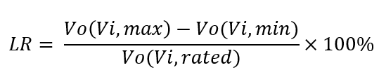 Voltage regulation may be determined using measurements at the rated, minimum and maximum conditions. Line regulation is given by